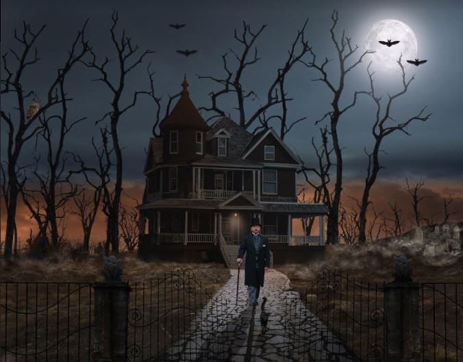 Rising directly in front of us was a towering, dark Victorian structure complete with tattered drapes flapping in the breeze outside of a third story window and a full moon hanging over one of the two chimneys.  I could swear I was looking at 1313 Mockingbird Lane.