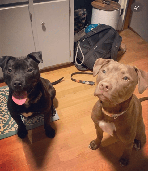 “Teamwork,” the two pit bulls barked then head-butted again.